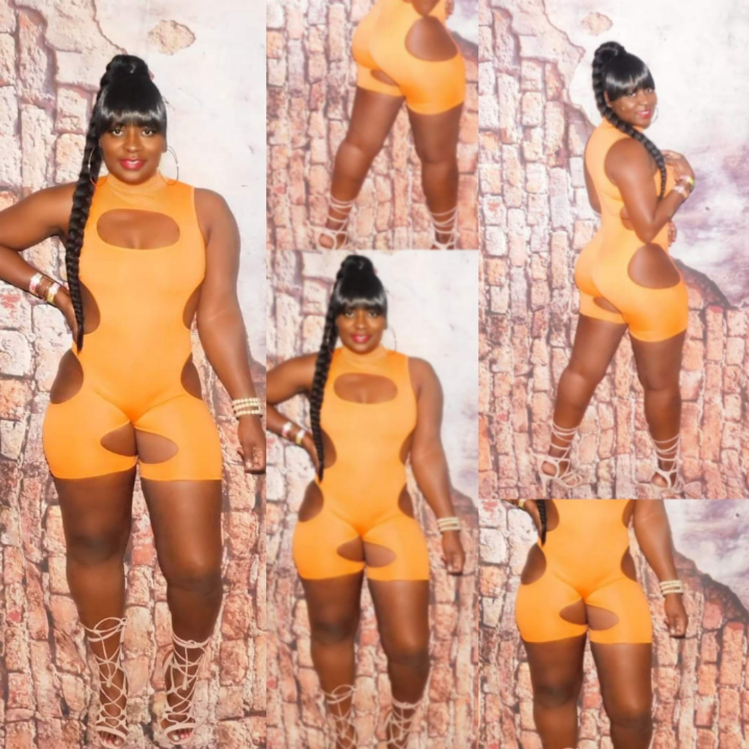 Orange Bodysuit With Holes, Spandex Fitted, Very Sexy And Definitely A Eye Catcher, Sexy Club Attire For Ladies.